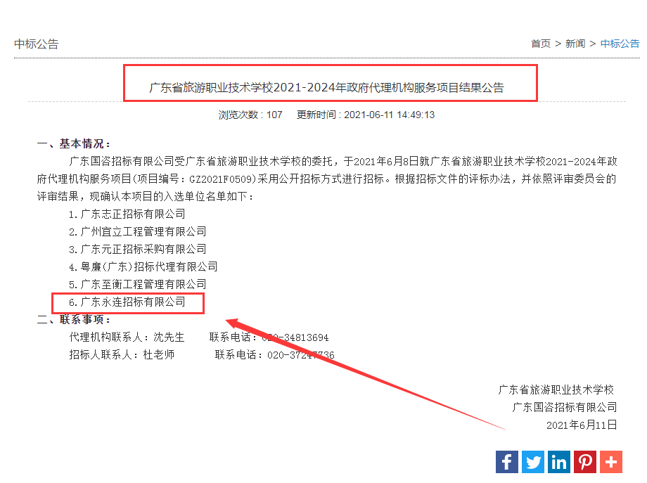 熱烈祝賀我司憑借優異的成績及雄厚的實力,成功入圍“廣東省旅游職業技術學校2021-2024年政府代理機構服務項目”。