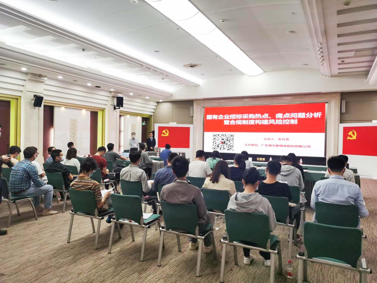 11月3日,我司信息系統項目管理師、財政部及廣東省政府采購評審專家、董事長:張開勇先生受邀到廣東南方新媒體股份有限公司(以下簡稱新媒股份)擔任培訓講師。開展以《國有企業招標采購熱點、痛點問題分析暨合規制度構建風險控制》為主題的專題培訓會議。
